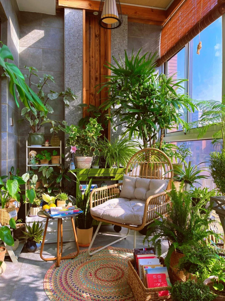 爱花人的阳台是缤纷的小花园,满是生机;读书人的阳台也许只有一把舒适的躺椅和半墙书,简单宁静。