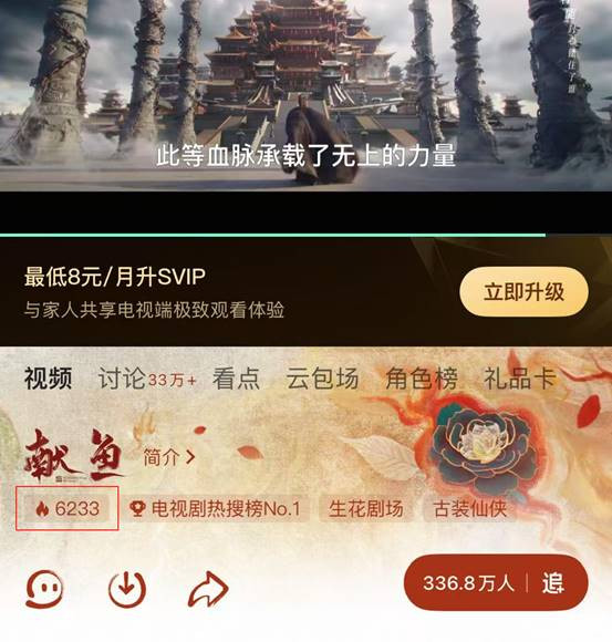 古装玄幻剧《献鱼》于裤播出,仅播3集,热度破6200,观众的追剧热情居高不下。